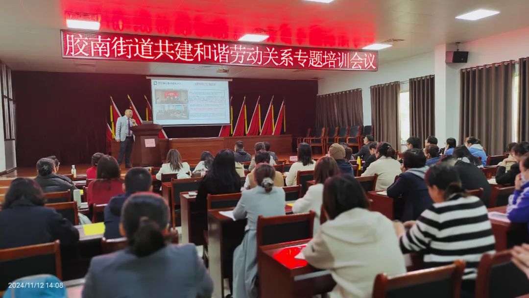 昨日下午,青岛西海岸新区劳动关系促进会在胶南街道举行共建和谐劳动关系专题培训会议。